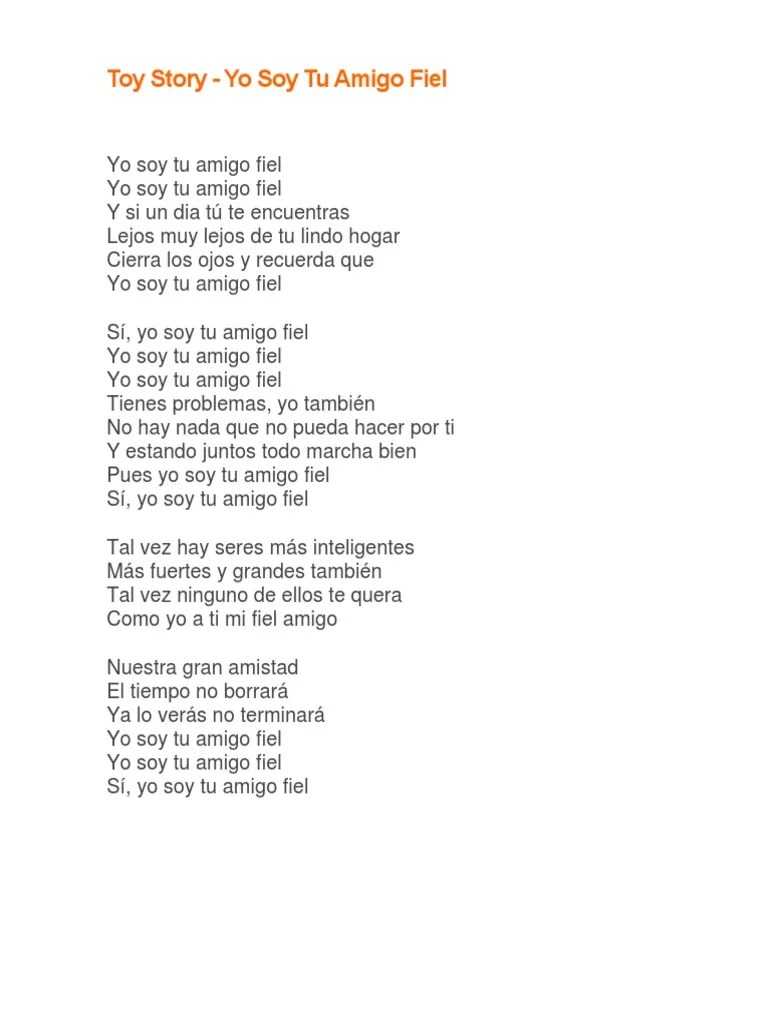 We Have got 5 pics about Tu Eres Mi Amigo Fiel Toy Story En Ingles images, photos, pictures, backgrounds, and more. In such page, we additionally have number of images out there. Such as png, jpg, animated gifs, pic art, symbol, blackandwhite, images, etc. If you’re searching for Tu Eres Mi Amigo Fiel Toy Story En Ingles subject, you have visit the ideal website. Our page always gives you hints for seeing the highest quality images content, please kindly hunt and locate more enlightening articles and pix that fit your interests.
